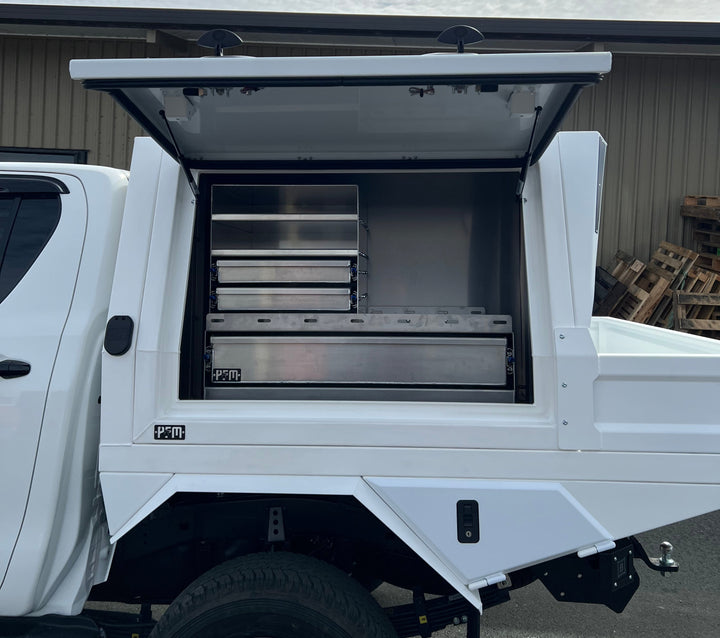 Fully customisable to suit any application, from trades to touring and camping. Features include custom ute trays, 12V power systems, a 42-litre water tank, internal drawer systems, and under-tray toolboxes. - Wheels & Tyres