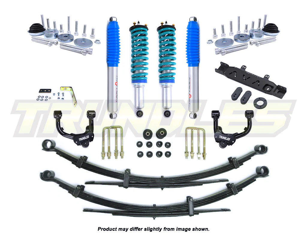 We strongly recommend you run an adjustable coil over when opting for a 75mm front lift. This allows you to dial in the ride height while also accommodating varying loads (future proofs your lift if you want to add a bullbar and/or winch in future), and gives you the ability to make any adjustments as necessary come certification time.